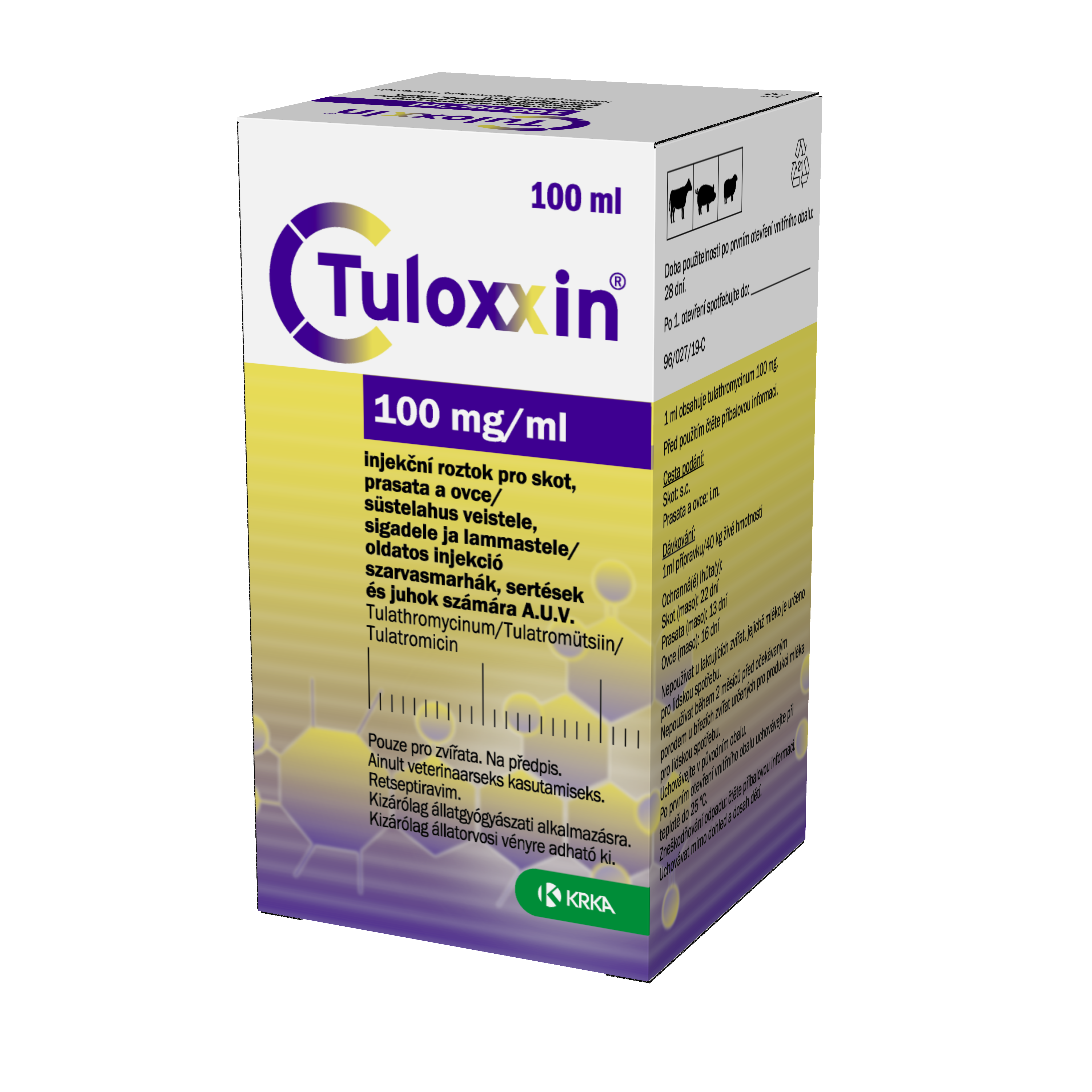 100 mg/ml oldatos injekció szarvasmarhák, sertések és juhok számára A.U.V.
